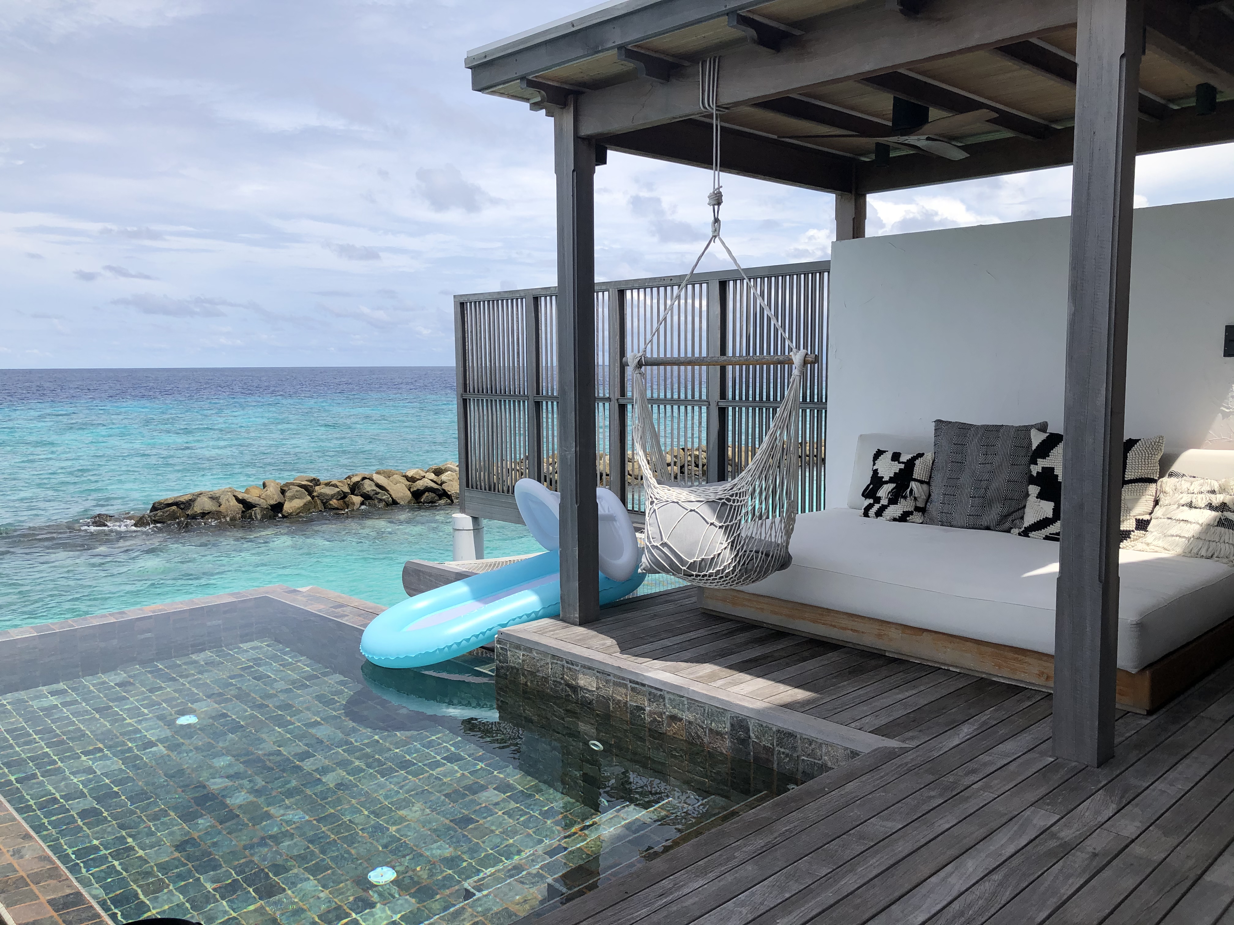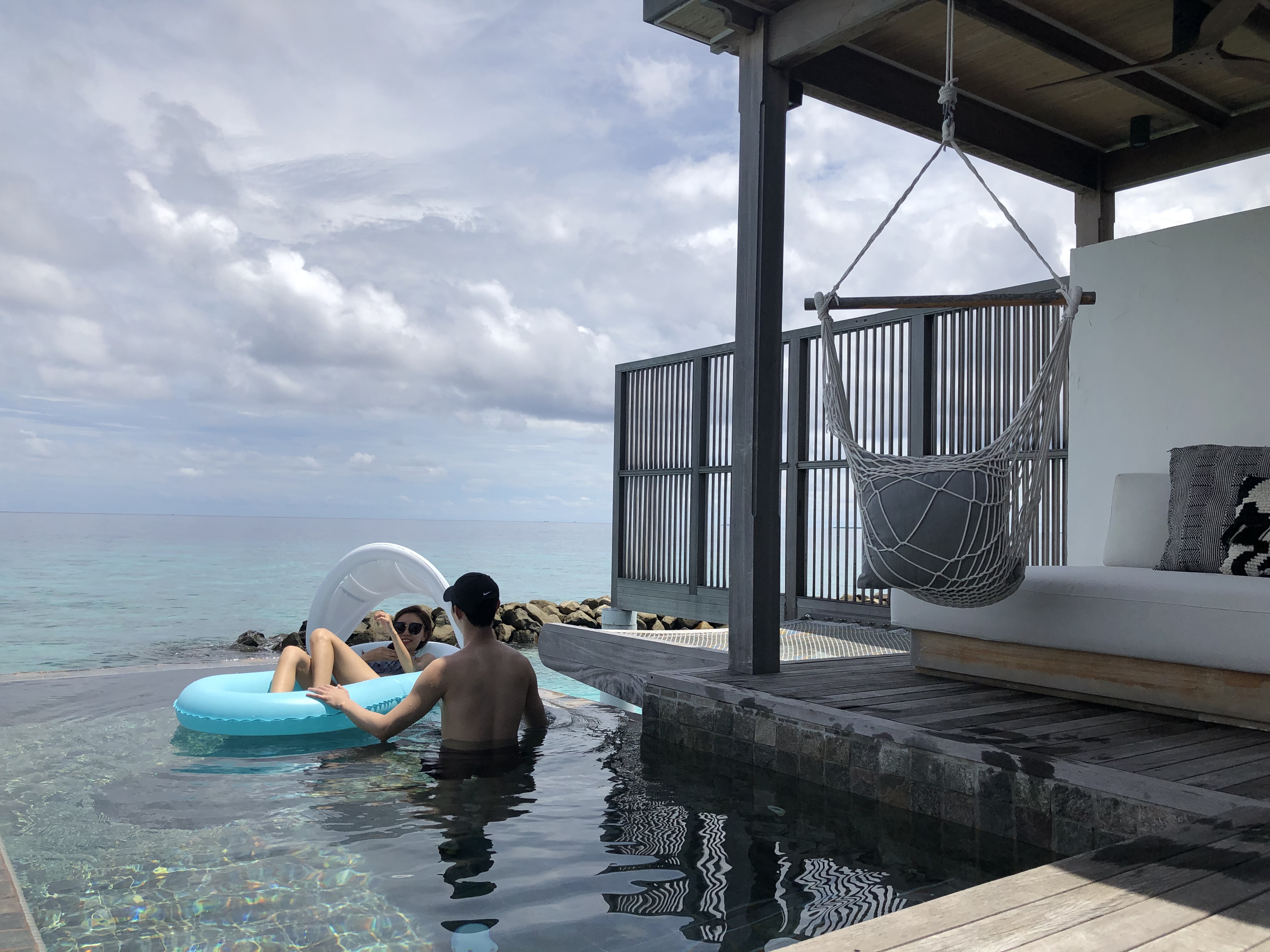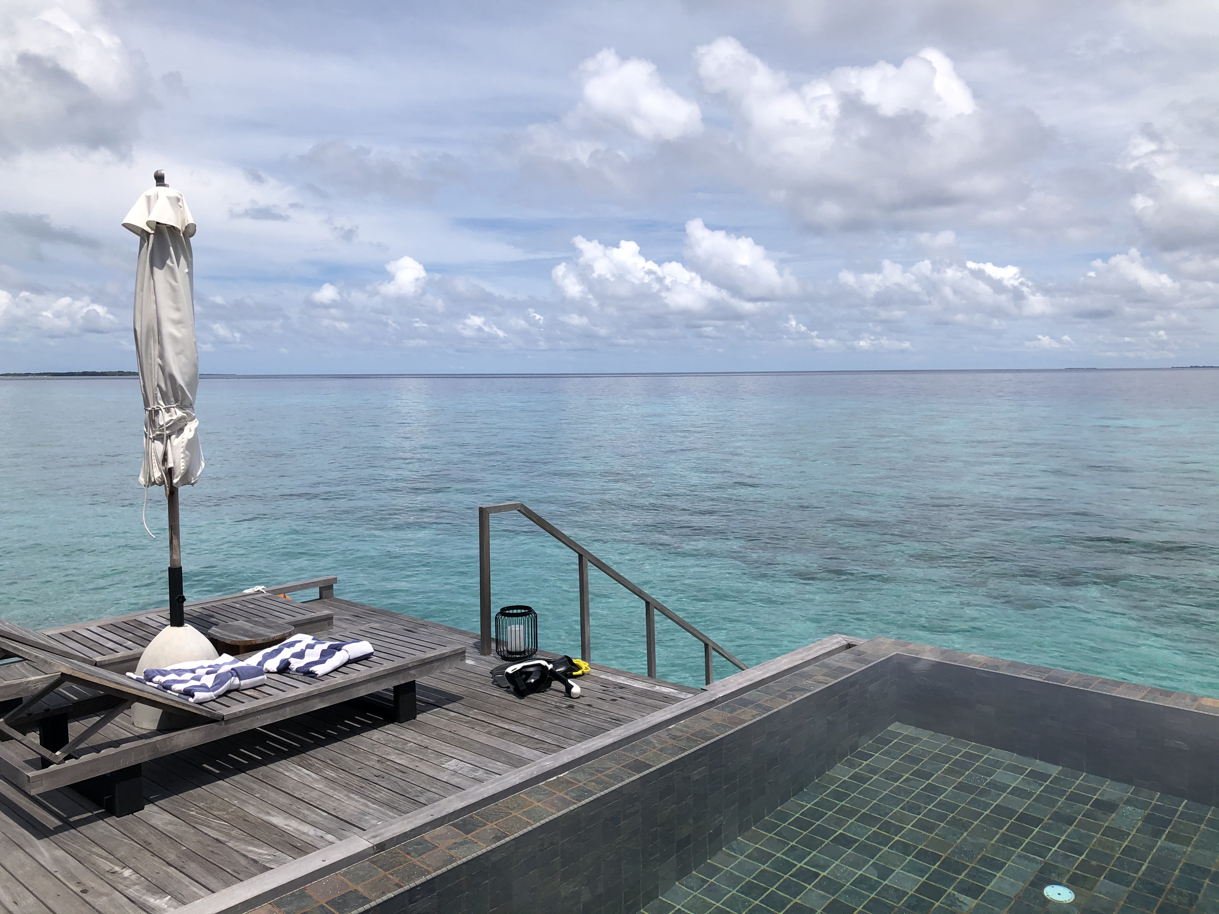몰디브 페어몬트 시루펜푸시 워터빌라, 테라스에 나오면 (아담하지만)개인 풀장이 있어서 수영을 하고 놀기도 하고, 바로 바다에 들어가 스노클링을 하며 시간을 보냈다. 액션캠 메모리카드를 안가져와서 수중 촬영은 하지 못했다. (셀프 머리 쥐어박기 콩콩)