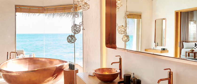 워터빌라 / 출처: 페어몬트 시루펜푸시 공식 홈페이지 (www.fairmont-maldives.com) 워터빌라 욕실 / 출처: 페어몬트 시루펜푸시 공식 홈페이지 (www.fairmont-maldives.com) 워터빌라에서 지내는 동안, 날씨가 갑자기 흐려져 구름이 몰려오거나 소나기가 오기도 했다. 밤에 자는 동안 천둥이 치기도 했다. 숙소에 엄청 큰 우산이 두 개 있어서 불편함 없이 지낼 수 있었다.