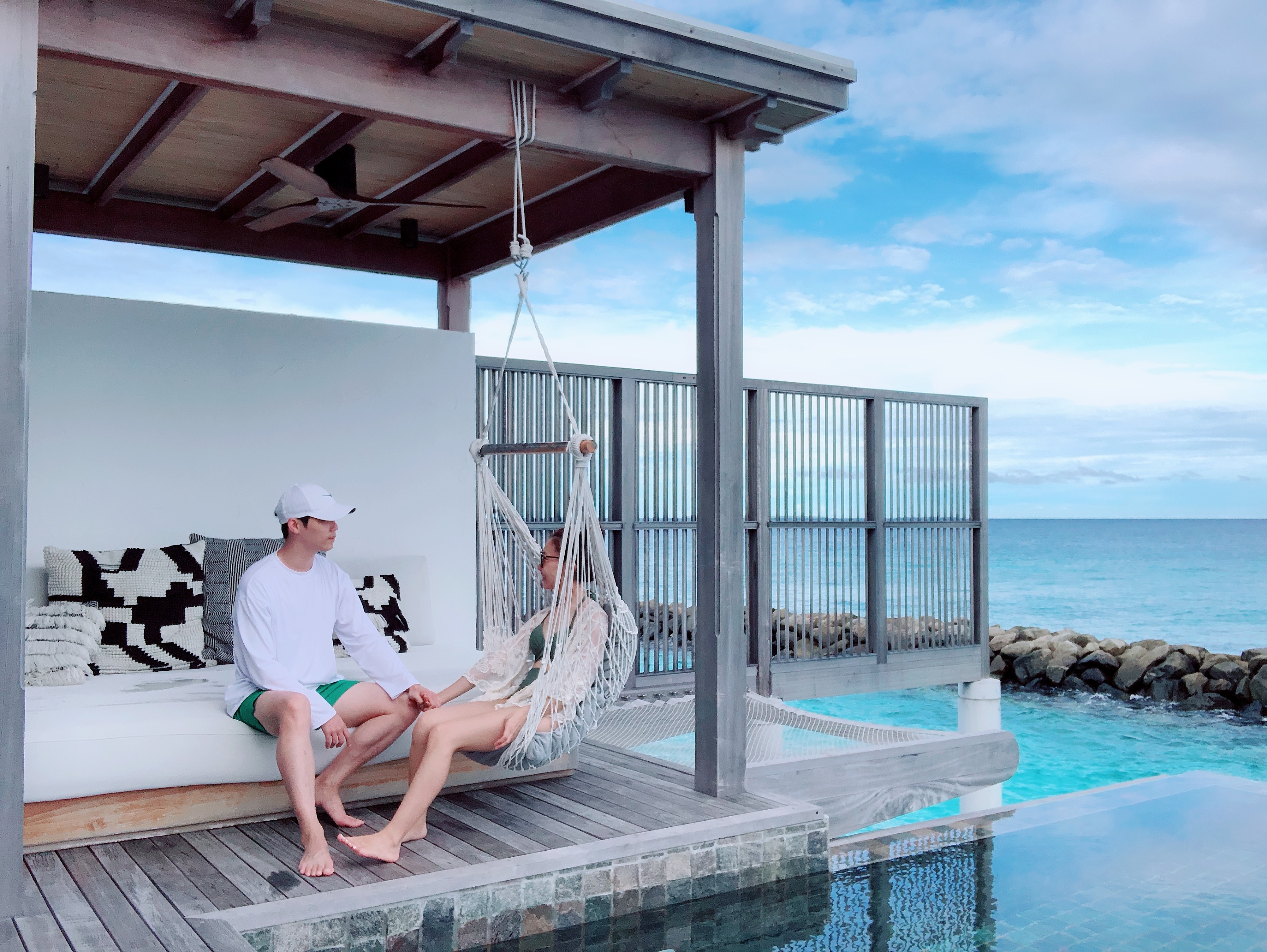 몰놀이를 끝내고 테라스에 있는 해먹에서 누워 음료를 마시며 쉬기도 하고, 같이 사진 찍으며 놀기도 하니 시간이 금방 가더라. 어떤 날은 낮잠도 자고, 침대에 누워 바닷소리 들으며 넷플릭스를 보며 쉬기도 했다.