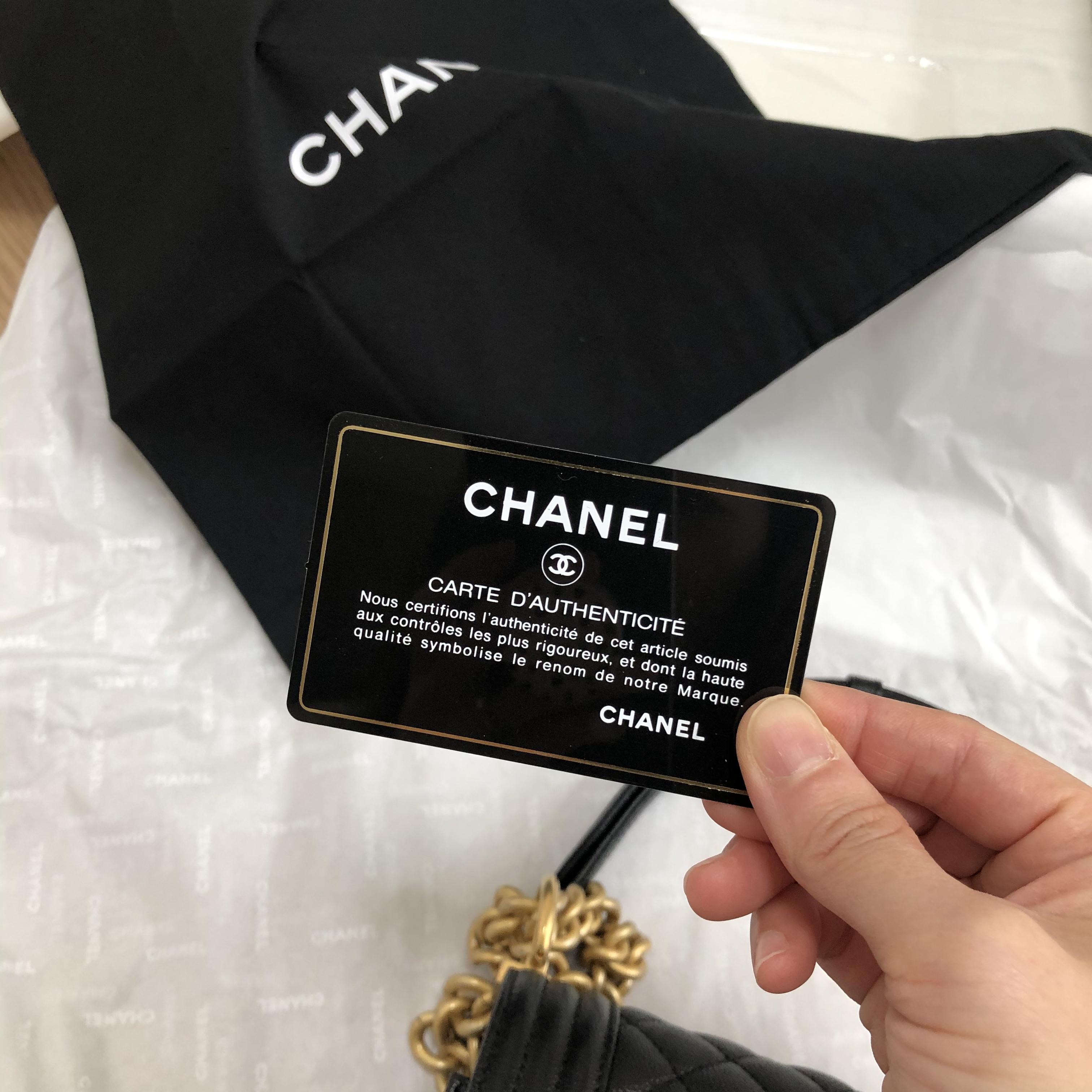 샤넬 보이백 미듐 빈티지 금장 캐비어 투명 보호 필름도 다 떼고, 가방 안을 확인해 보았다.