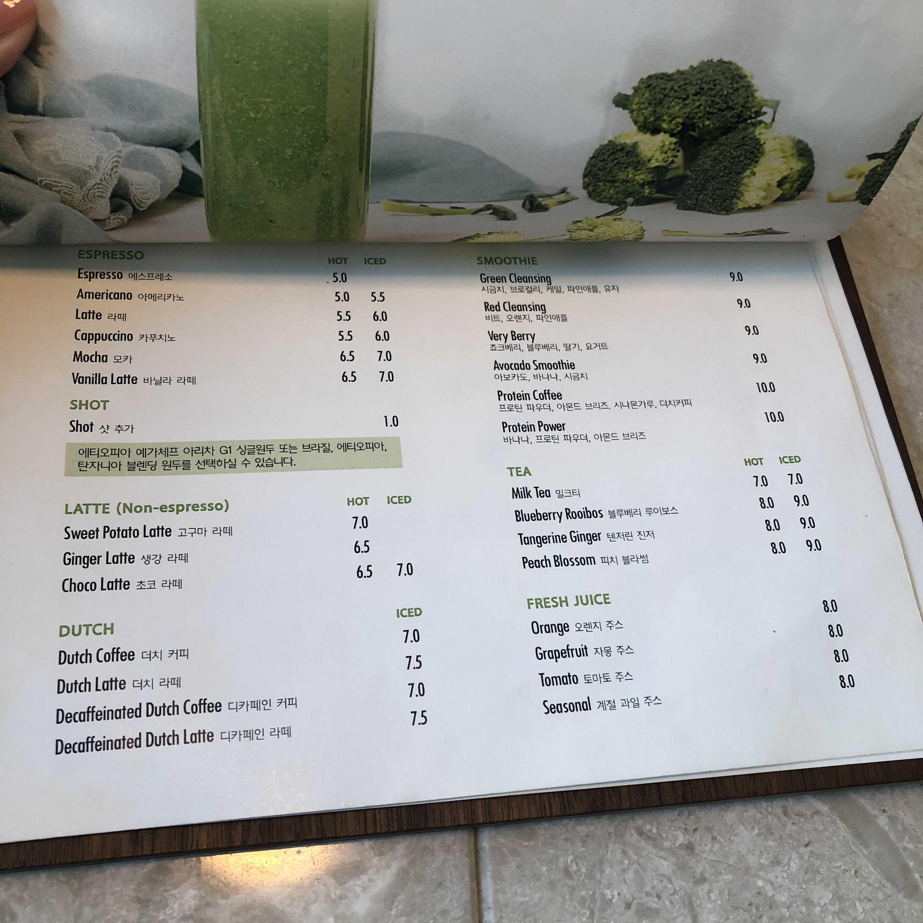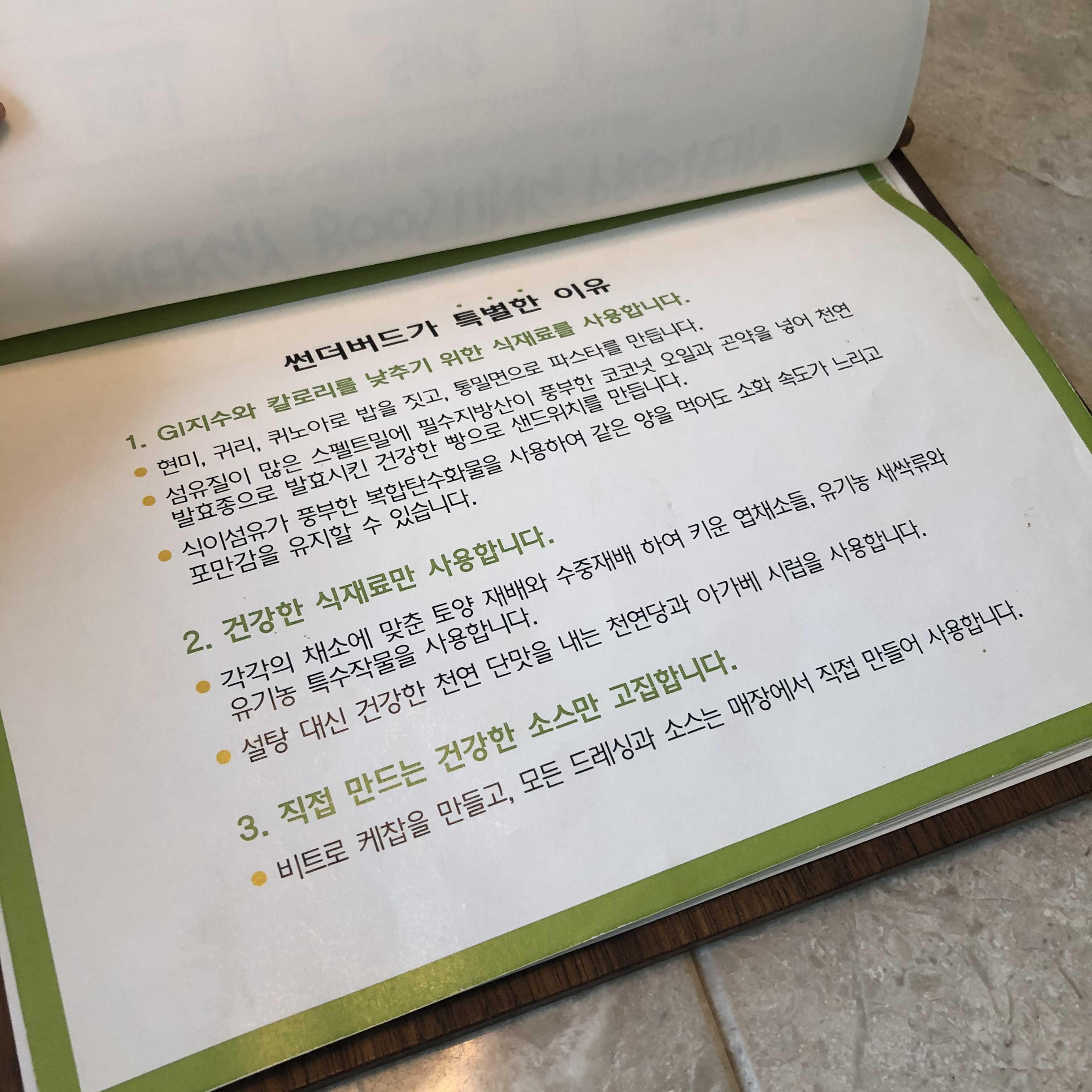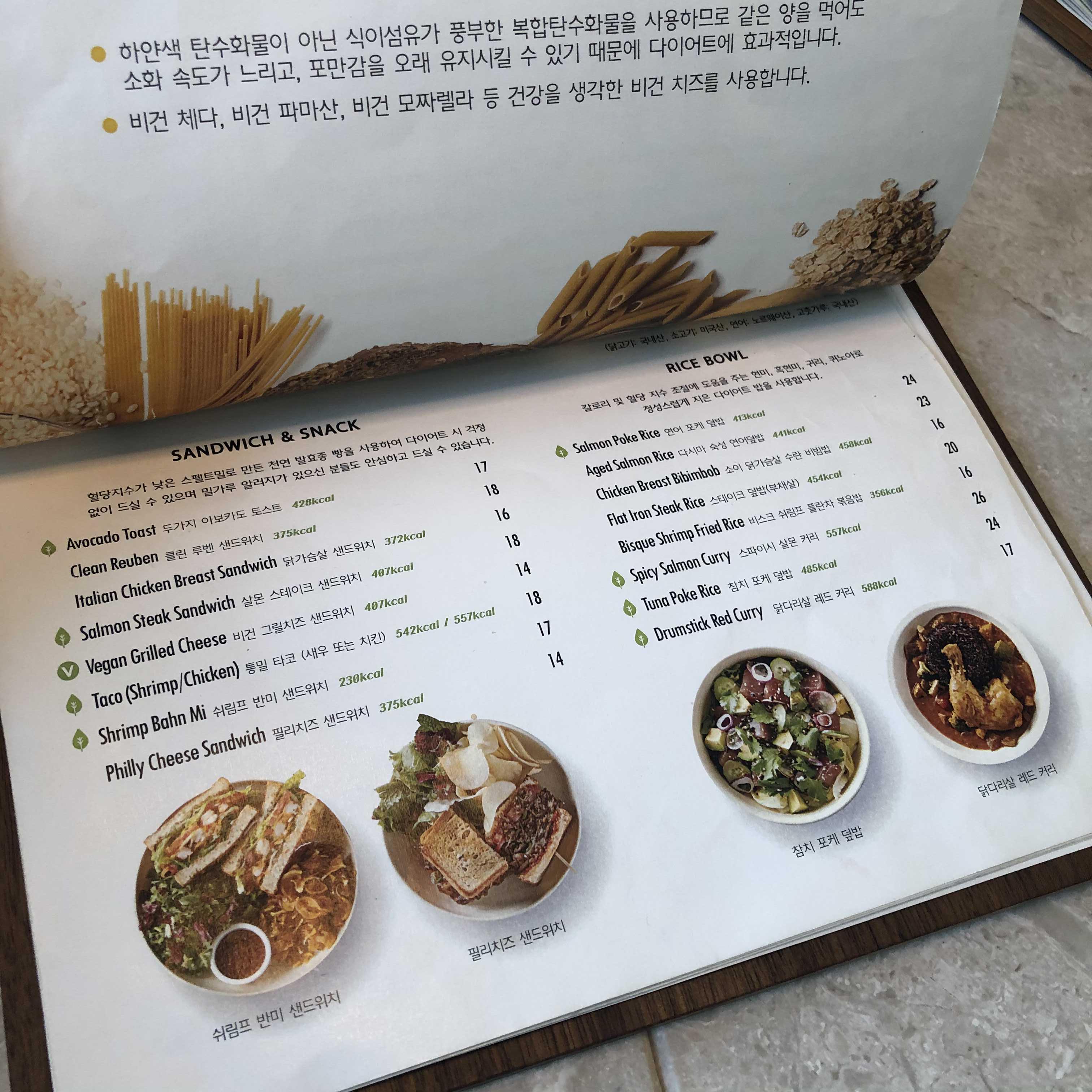 압구정 맛집 다이어터 비건 레스토랑 추천 입구 쪽에 카운터가 있고 옆에는 오픈 주방으로 되어있다. 테이블에 메뉴가 있고 주문과 계산은 카운터에서 하면 된다.